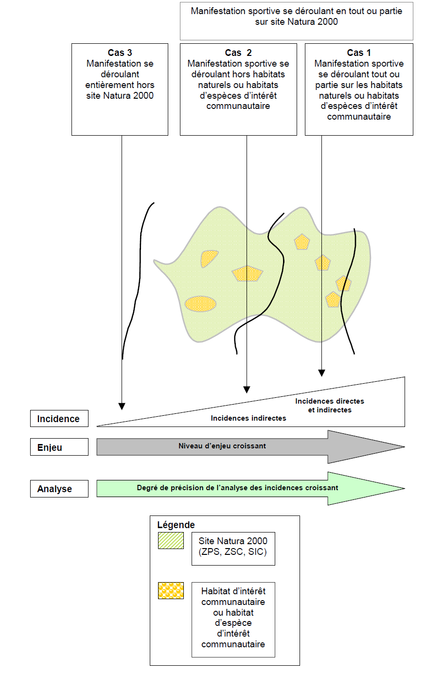 Cette évaluation est proportionnée à l’importance de la manifestation, aux enjeux de conservation des habitats naturels et des espèces d’intérêt communautaire sur le secteur identifié par l’organisateur. L’objectif est de vérifier la compatibilité du projet avec les objectifs de conservation et déterminer si le projet peut avoir un effet significatif sur les habitats et les espèces ayant justifié la désignation du site Natura 2000. Si tel est le cas, l’autorité décisionnaire s’opposera au projet (sauf cas d’intérêt public majeur et sous certaines conditions).